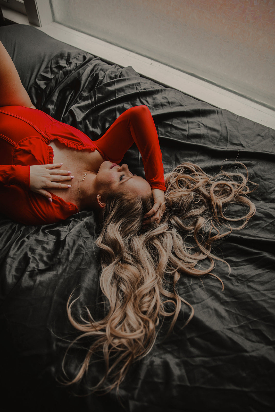 A boudoir photoshoot is an empowering and intimate experience where I capture your beauty in my private home based boho studio. Expect a comfortable atmosphere, skilled guidance, and personalized attention to highlight your unique allure. Embrace the confidence boost and cherish the timeless, tasteful images that celebrate your individuality.